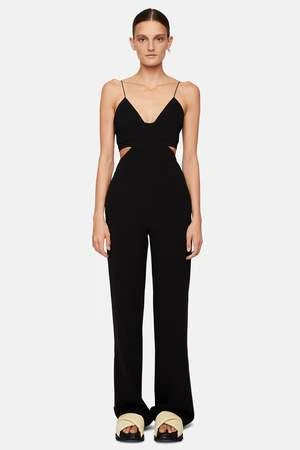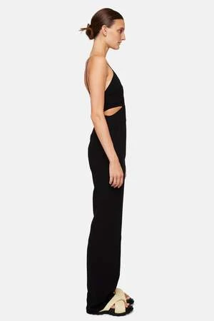 The Milan Jumpsuit is impeccably crafted from a stretch crepe fabric in timeless black. This minimal silhouette features corset-inspired detailing, small side cutouts for a chic skin reveal, and delicate straps that may need a slight adjustment to accommodate a variety of bust sizes. Size up for a slightly more comfortable fit.