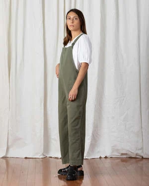 Thick pima cotton overalls with straight leg, patch pockets, adjustable straps and front button closure. Pre-washed + pre-shrunk. Slightly oversized