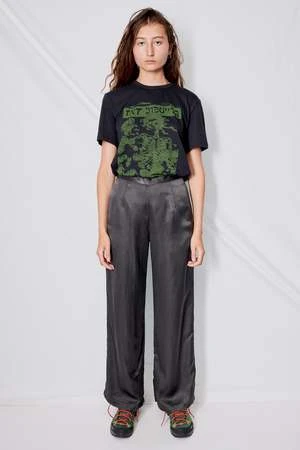 Gull Grey Cupro Clean Pant from Assembly New York. Straight leg trousers with front pleat. Side pockets.