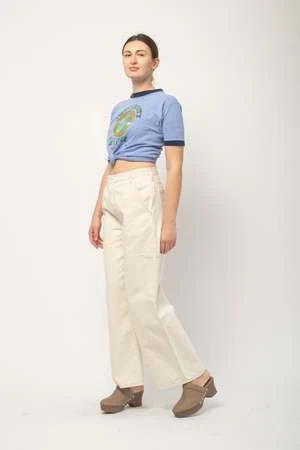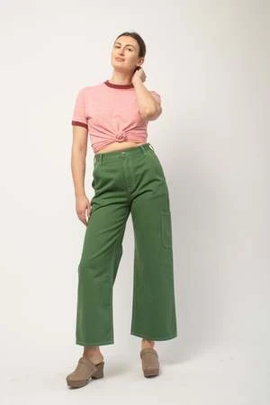Fitted waist, relaxed straight legs. Fits true to size, Anya is wearing a M in the Green for a more traditional fit and a L in the white for a more relaxed look.