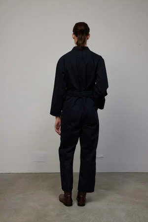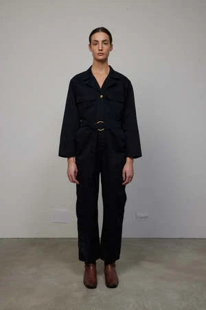 Their classic jumpsuit, in fabric sourced from one of the oldest mills running in the world. Classic fit with wide leg shape, deep front pockets and back patch pockets. Ozone washed using state-of-the-art low liquidation technology for a peached hand and relaxed feel. Signature brass button closures with removable brass double D-ring belt.