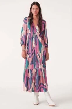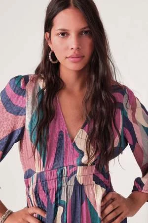 BA&SH Wina Dress in Blue is a fun piece to wear for any occasion. Features long sleeves, V-neckline, fitted waist band, frills on the skirt and a side zipper closure. Wear with boots and a jacket for a chic everyday look.