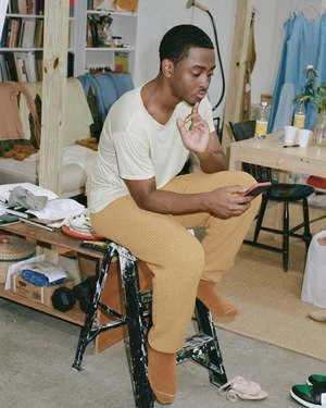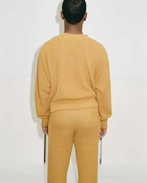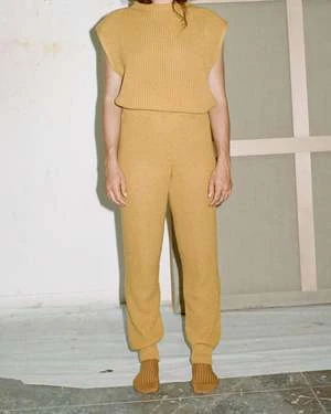 Organic cotton ribbed knit pant from Baserange. Pull on style with elastic waistband and a full length leg. Ribbed cuff at ankle. Unisex.