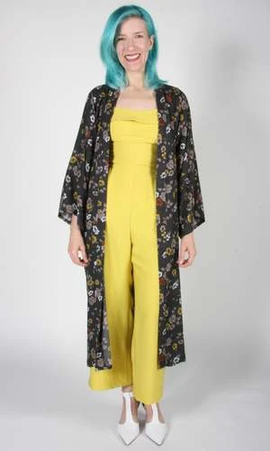 Sandgrouse is one of our classic tailored cropped jumpsuit cuts in beautiful new spring colours. It has a back invisible zipper and pockets in the pant. Also paired with the Warbler robe in Dusk Blooms.