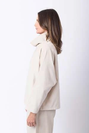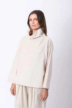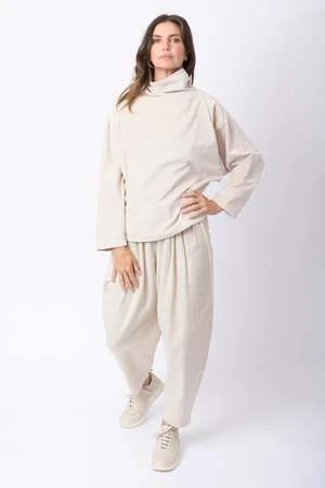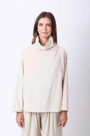 A relaxed fit cotton velveteen turtleneck with dolman sleeves in ivory.