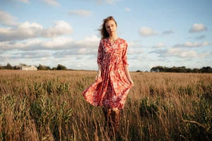 Red Floral Cotton Dresses Handblock Dresses. This dress may look like a simple one but it fits and falls like a dream. Flattering to all body types, it has a shirt collar and box pleats in the skirt area. It has a big flare and the excess frill at the lower part makes it fall so well. Bonus- It comes with two pockets !!
