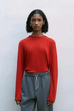 Crafted from a fine ecological viscose, this plain knit t-shirt with long sleeves, has been cut for a regular fit. Enjoy this classic silhouette updated with cut-out neck and armhole to elevate your looks and wear everyday.