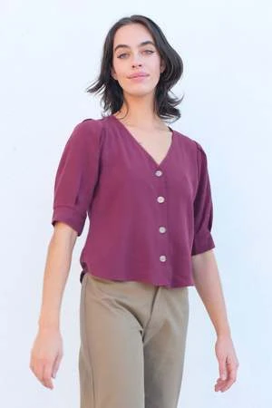 Exude effortless style with this button up blouse made from a soft linen blend. This top is timeless and perfect for adding a touch of chic to any outfit.