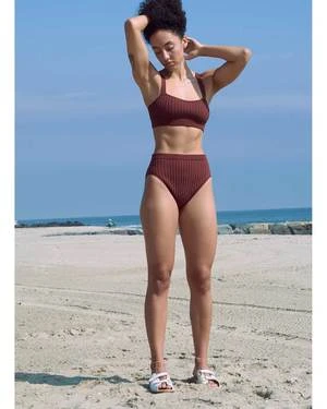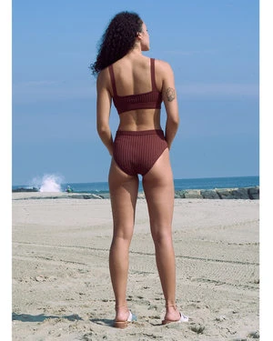 Ribbed bathing suit top. Formerly called Curve Top. This sporty silhouette works for swimming and everyday use.
