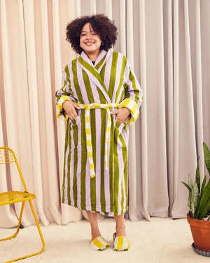 Cotton terry bathrobe with shawl collar, patch pockets, and tie. 95% cotton terry, 5% polyamide, 430 GSM. This item is Oeko-Tex Standard 100 certified (no harmful chemicals were used during production). Made in Portugal.