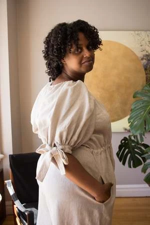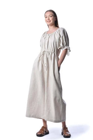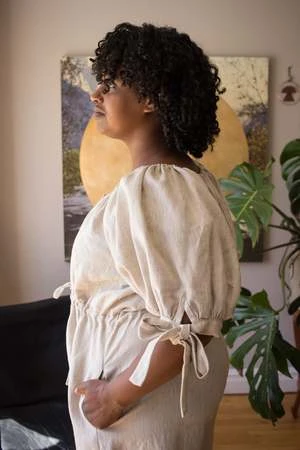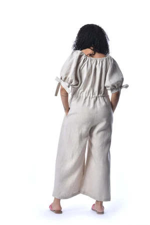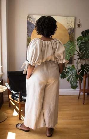 Eliza Faulkner’s Ramona Jumpsuit is not only practical, but whimsical, light and romantic too. Made out of a super comfortable linen, the Ramona has an elasticized neckline, a button front closure and mid-length puff sleeves with adjustable bow ties. It has an adjustable drawstring at the waist and can be worn loose or cinched in. With super wide legs and deep side pockets, you’ll want to wear this everyday!