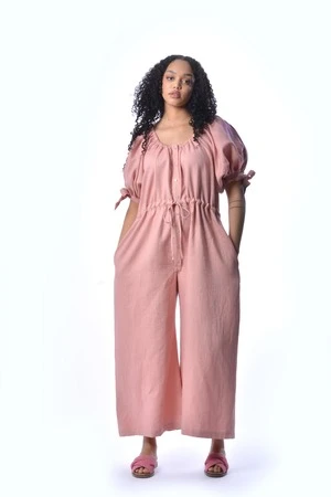 We wanted to make a jumpsuit that was not only practical, but also whimsical, light, and romantic too. The Ramona jumpsuit is what was born and it’s all those things and more. The Ramona has an elasticized neckline, a button front closure, and mid length puff sleeves with adjustable bow ties. It has an adjustable drawstring at the waist and can be worn loose or cinched in. With super wide legs and deep side pockets you’ll want to wear this everyday!