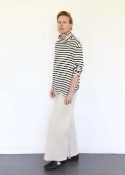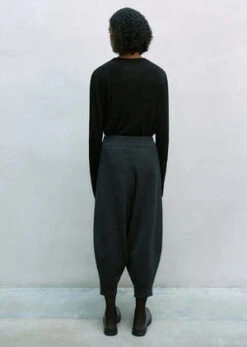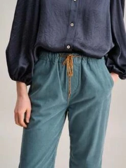 The Novel Gray Shimmer has an elastic waist with belt loops, a functional zipper fly with a single button and functional front & back pockets with a slight flare.