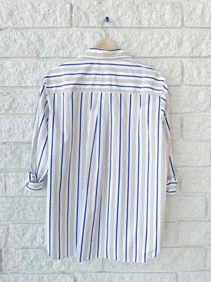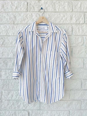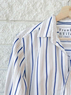 Frank & EileenJoedy Button Up Shirt – Navy Double Sand Stripe