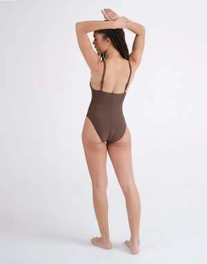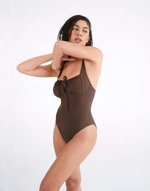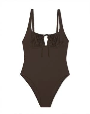 A best seller updated for the perfect fit. The Chemise One Piece is inspired by vintage underpinnings for a look that’s undeniably feminine and not fussy. This timeless swimsuit features comfortable adjustable shoulder straps and an open neckline with subtle ruched detailing. A delicate self-tie front and curved underbust seam provide a supportive lift. A flattering high leg opening complements moderate coverage at the back.