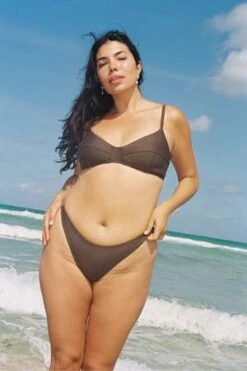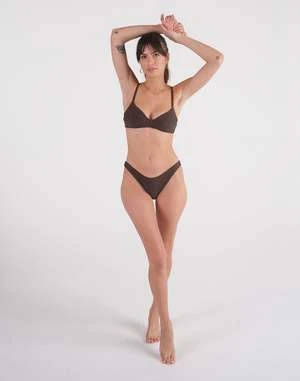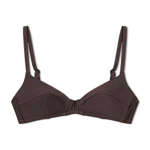 A modern take on a vintage shape, the Simone Retro Top is a soft yet structured style cut for a universally flattering fit. It features a contouring apex seam detail at the cups with a lightweight layer of padding along the bottom bust, resulting in a subtle lift with added support. Adjustable straps and a rubberized G-hook closure at the back equipped with a three-loop adjustment ensure a close, customizable fit.