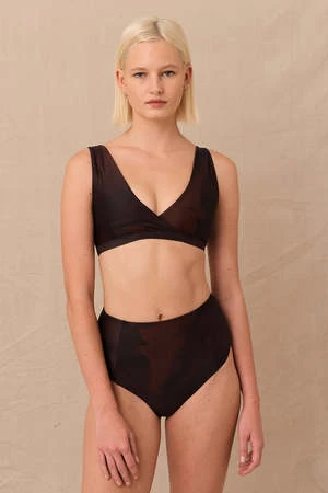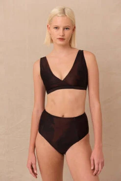 Cross front swim top with flattering V-neckline and wide shoulder straps – if you’re seeking a bit more coverage. Supportive elastic band under bust, removable soft cups and adjustable straps makes this our most support style bikini top.