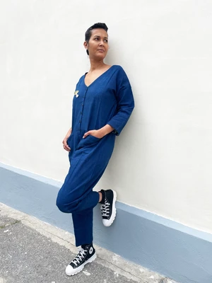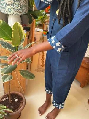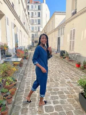 The Libert Collection has been made in collaboration with Ombre Claire, a jewelry design studio and retail store base in Paris. Every inside cuffs is block printed with their design. Roll the sleeves up or down depending on your mood (arms and legs).