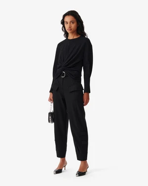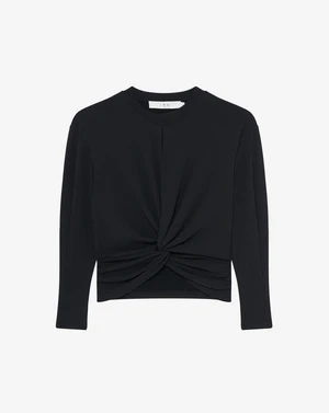 COLINE draped top. Long sleeves. Round neck. Twisted bow at middle of top. Made in Portugal.