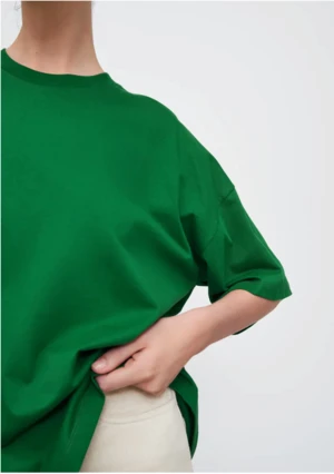 A short sleeve tee with a very oversized fit and finished with a ribbed crew neck. Made from a mid-weight organic jersey.