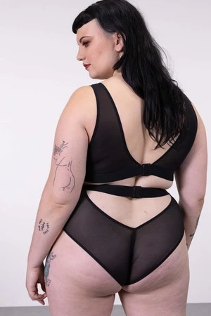 The Ramble On Bra features a sheer support with a scoop neck front and deep V in the back.