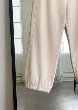 A heavier version of the beloved Le Bon Balloon Pant, now in Naturel french terry. T he ultimate comfort companions for those chilly days when you long for warmth. Elastic leg opening to show off your shoes and an elastic high waist, unique side panels, and hidden side slit pockets.