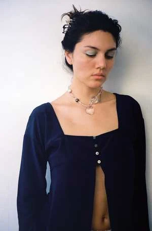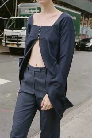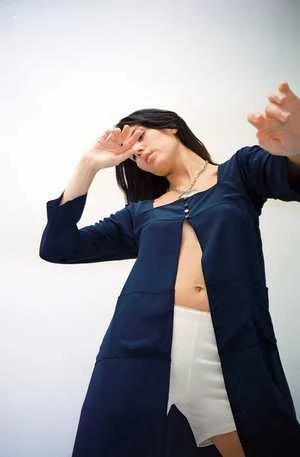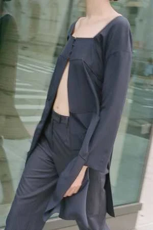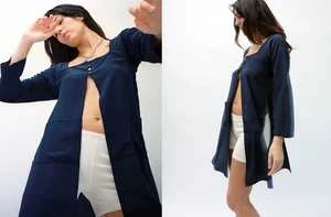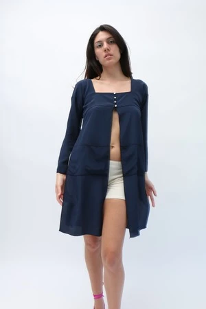 Navy Llonga long sleeve silk tunic. With a four button closure, a slit down the front and sides. Square neck and back.