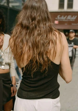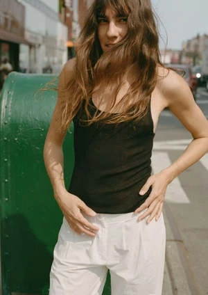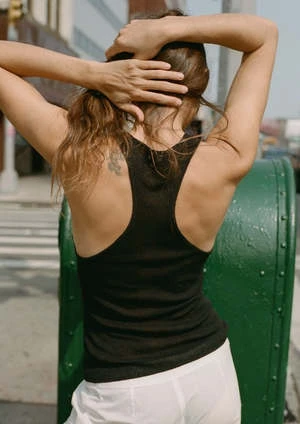 A delicate knit racerback tank. Semi sheer, perfect for layering.