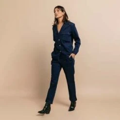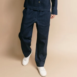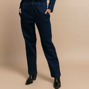 Our Denim Jet Set pants feature an elastic waistband for ease in styling and in wearability. Pair with a chunk knit and loafers or our Denim Set top for the full Canadian tuxedo effect. A true staple in your Fall/Winter wardrobe.