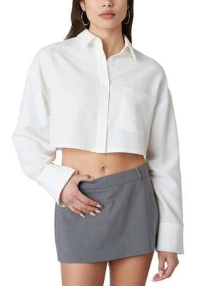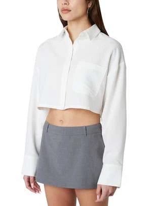 This White Cropped Austin Button Up adds an effortless, modern feel to your day-to-day look. Its boxy silhouette is accented with raw hem and patch pocket detailing to create a distinctive and timeless look. Instantly elevate any outfit with this piece.