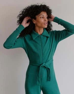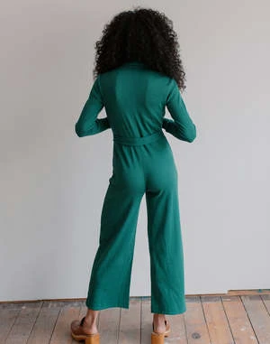 The Ribbed Jumpsuit features a subtle front zipper, a structured collar, and is accompanied by a tie (with no belt loops) to allow flexibility to tie where you’d like, if you’d like. The Jumpsuit has a subtle flare pant, for you to dress up, or casually wear, and is perfect for layering. Made with 100% GOTS certified Organic Cotton, with 2% spandex – the nature of the rib fabric makes it very stretchy, and we must say: this is our softest fabric yet.