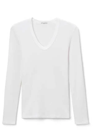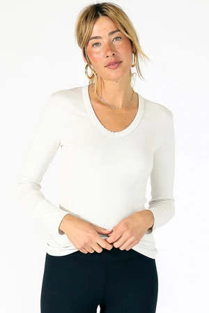 we’ve upped our game for fall and added this sexy, slinky, cotton rib that works for every body type. made from 90 cotton/10… an ultra deep u-neck and only in the most elevated colors, black and sugar, perfect for date night.
