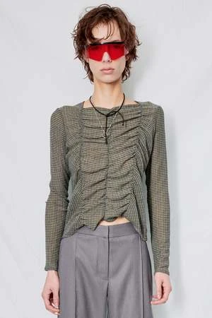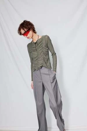 Mystic Green Uniformity Top from Permanent Vacation. Effortless top with a square-cut neckline and relaxed gathered detail, in a special greenish-grey hue.