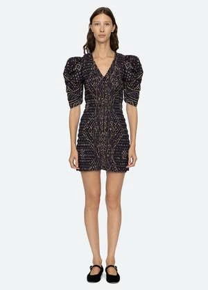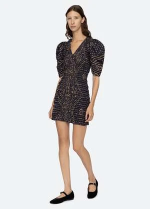The Delphine pucker cotton mini dress features puff sleeves, smocked body and mini silhouette.