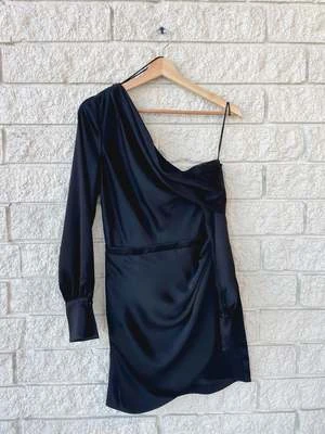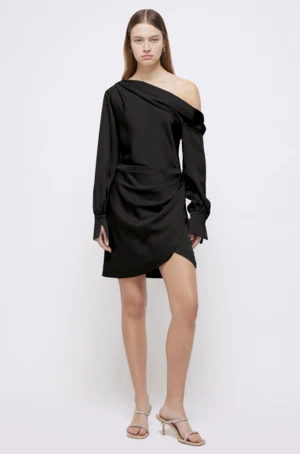 The Simkhai Cameron One Shoulder Mini Dress in Black.