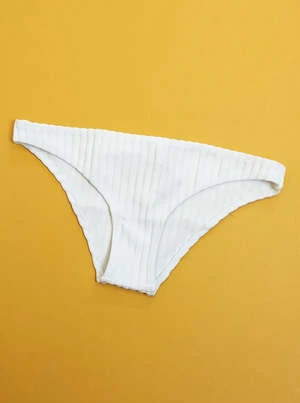 Classic low rise cheeky bottom in a ribbed fabric. Can be worn at or above the hip for a leg-lengthening effect.