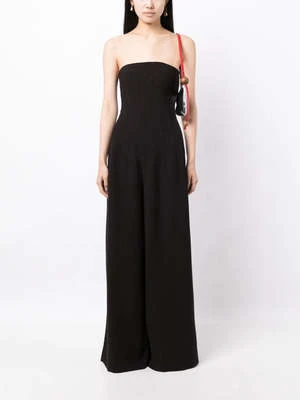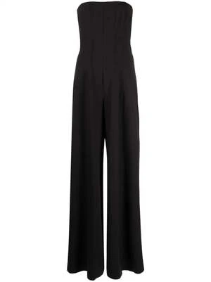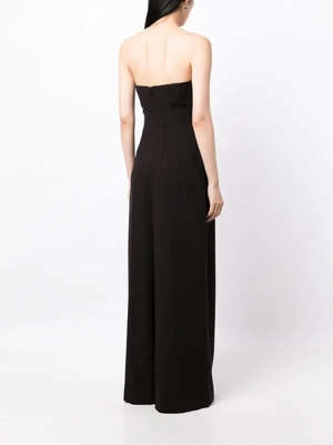 Staud’s Benjamin Jumpsuit features a strapless bodice and wide-leg silhouette with a back concealed zip closure.